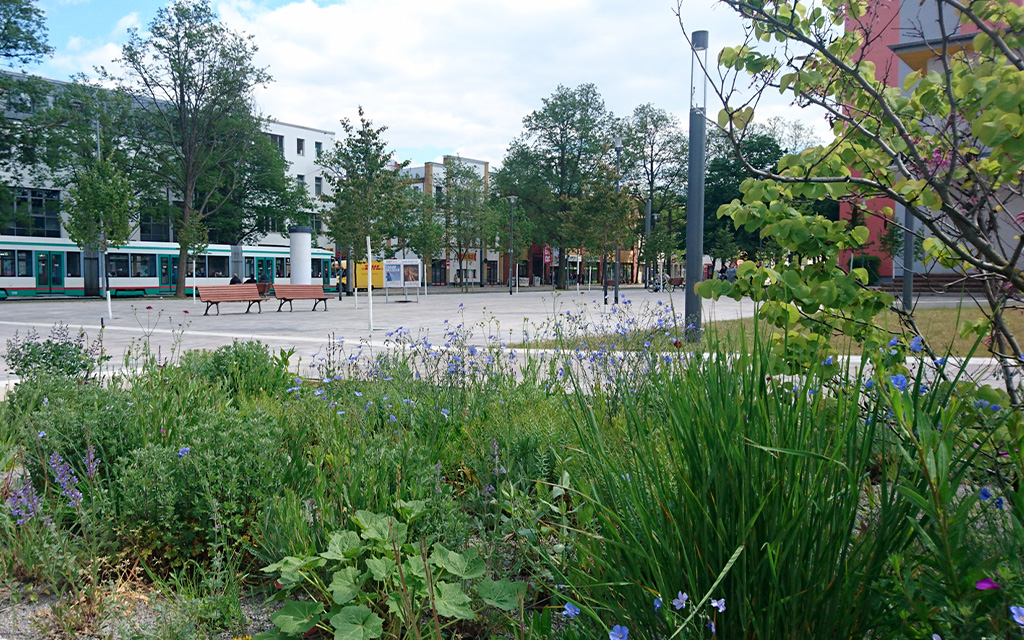 Tiefreichende Durchwurzelung und grundstücksbezogenes Wassermanagement in einer modularen Plattform.