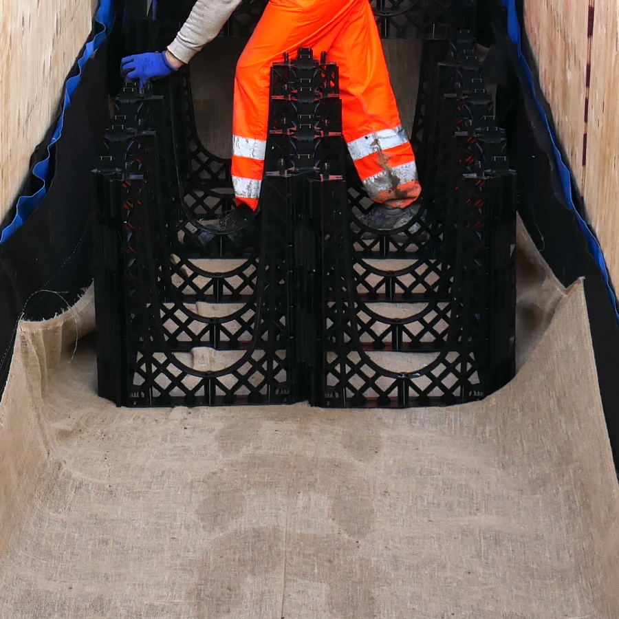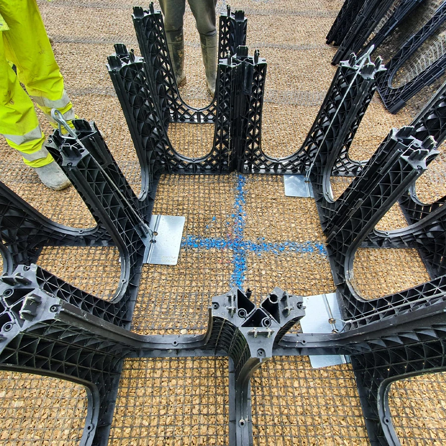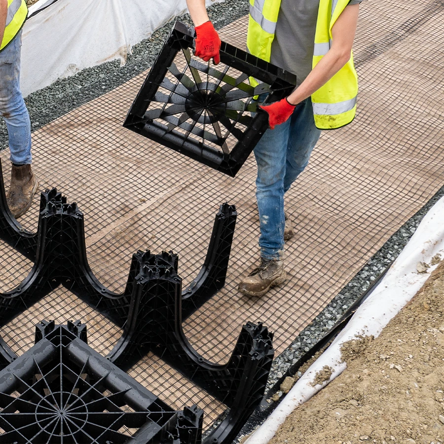 Wird oberhalb der Wurzelkammersysteme eingebaut, um das Eindringen des Unterbaus zu verhindern, die Oberfläche zu stabilisieren und vertikales Wurzelwachstum zu begrenzen.