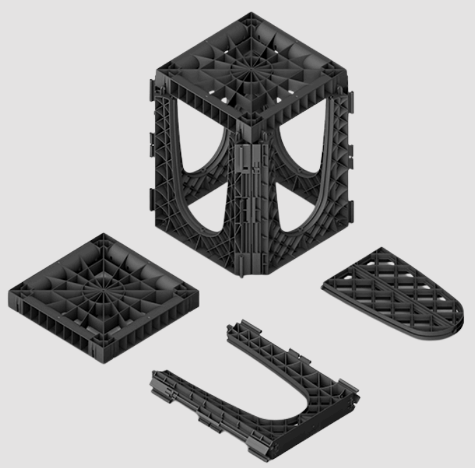RootSpace provides a structural framework that protects soil from compaction while supporting pavement loads above. With more than 95% void space, the