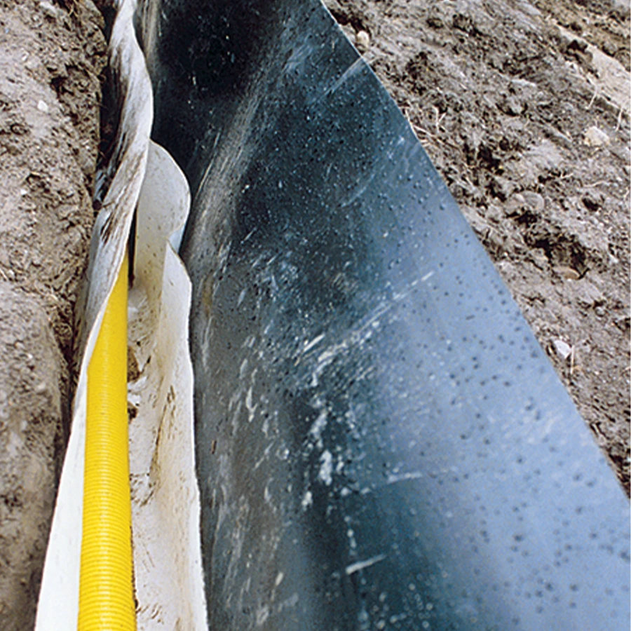 Flach ausgeführte Wurzelsperren für tiefere Einbausituationen, die wurzelfreie Zonen entlang von Fundamenten und Leitungstrassen schaffen.