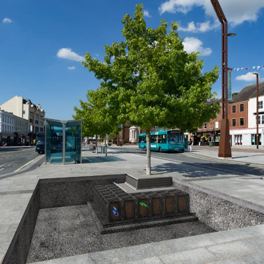 Wurzelkammersysteme für vitale Stadtbäume und die Einhaltung von SuDS-Anforderungen