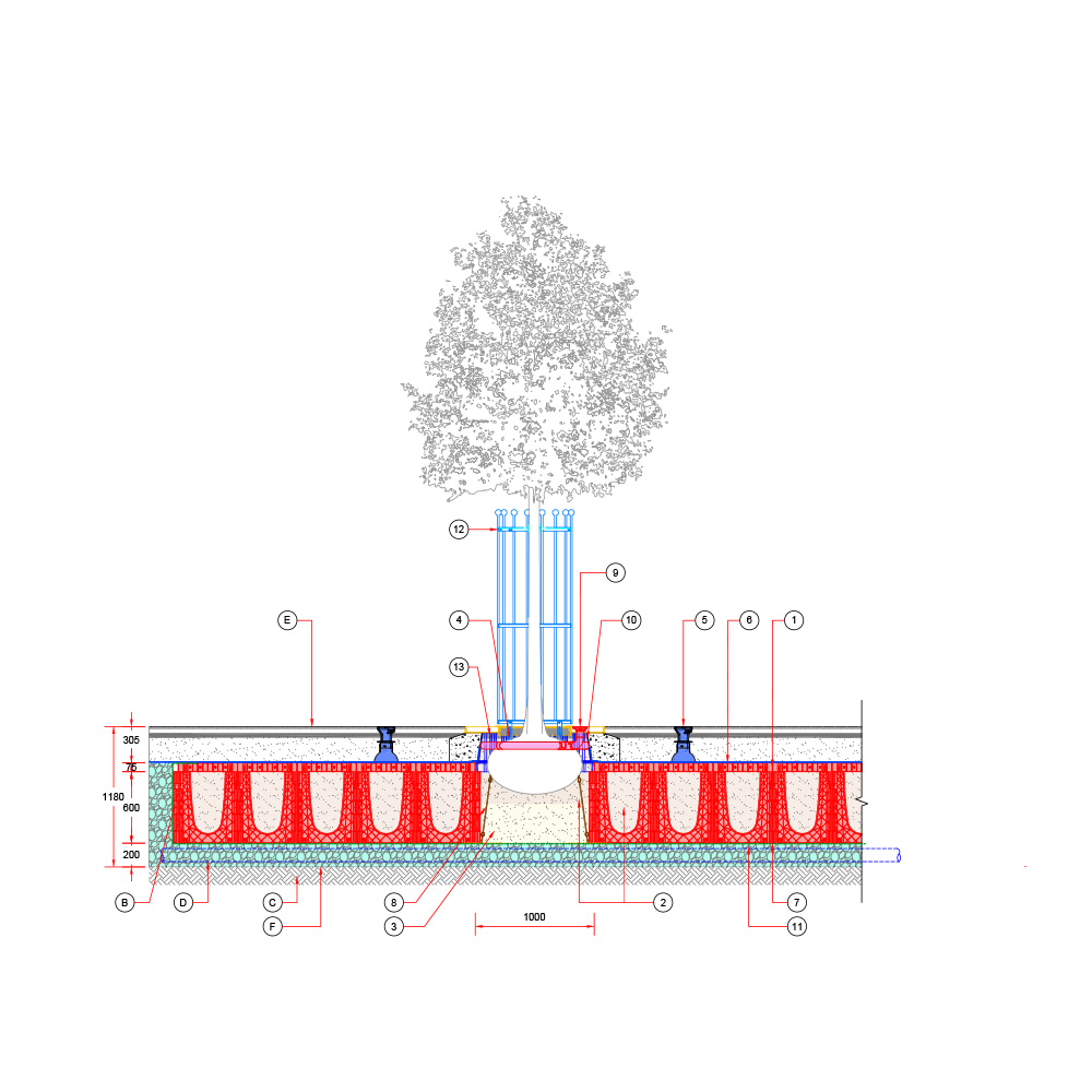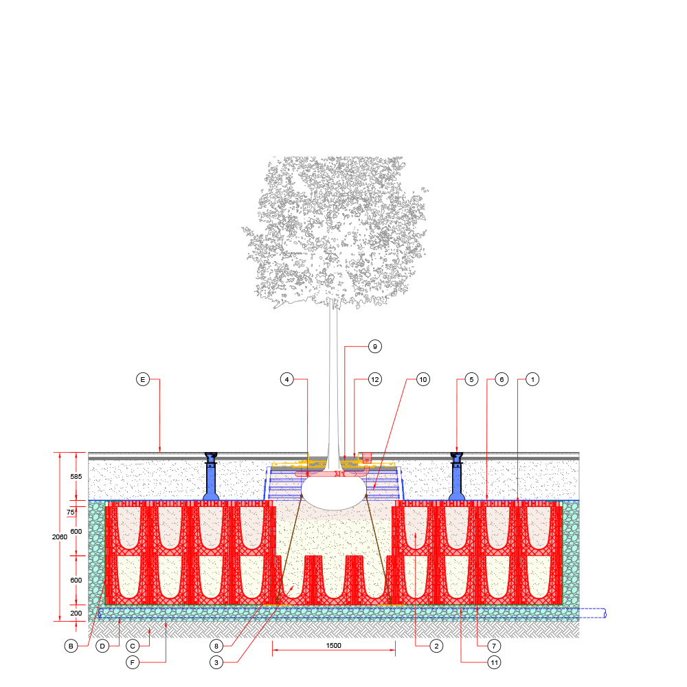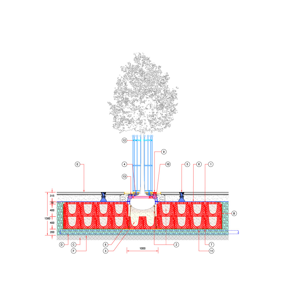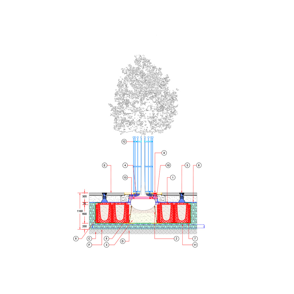Baumgrube für sehr großwüchsige Baumarten in befestigter Fläche – RootSpace 1200.