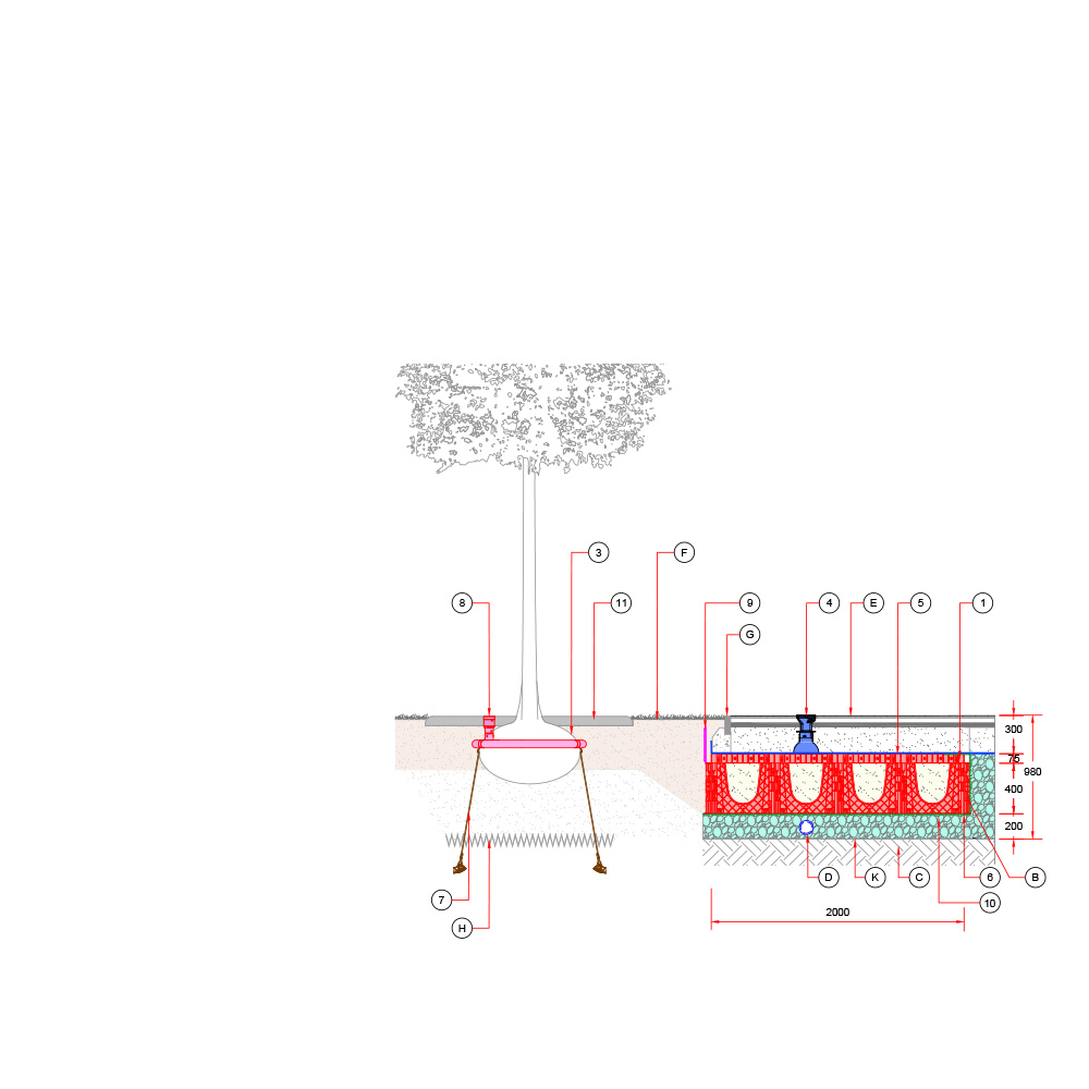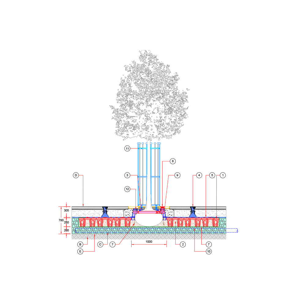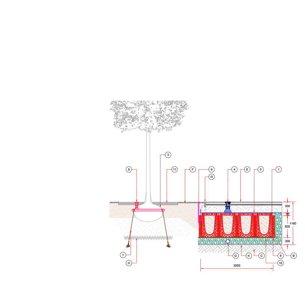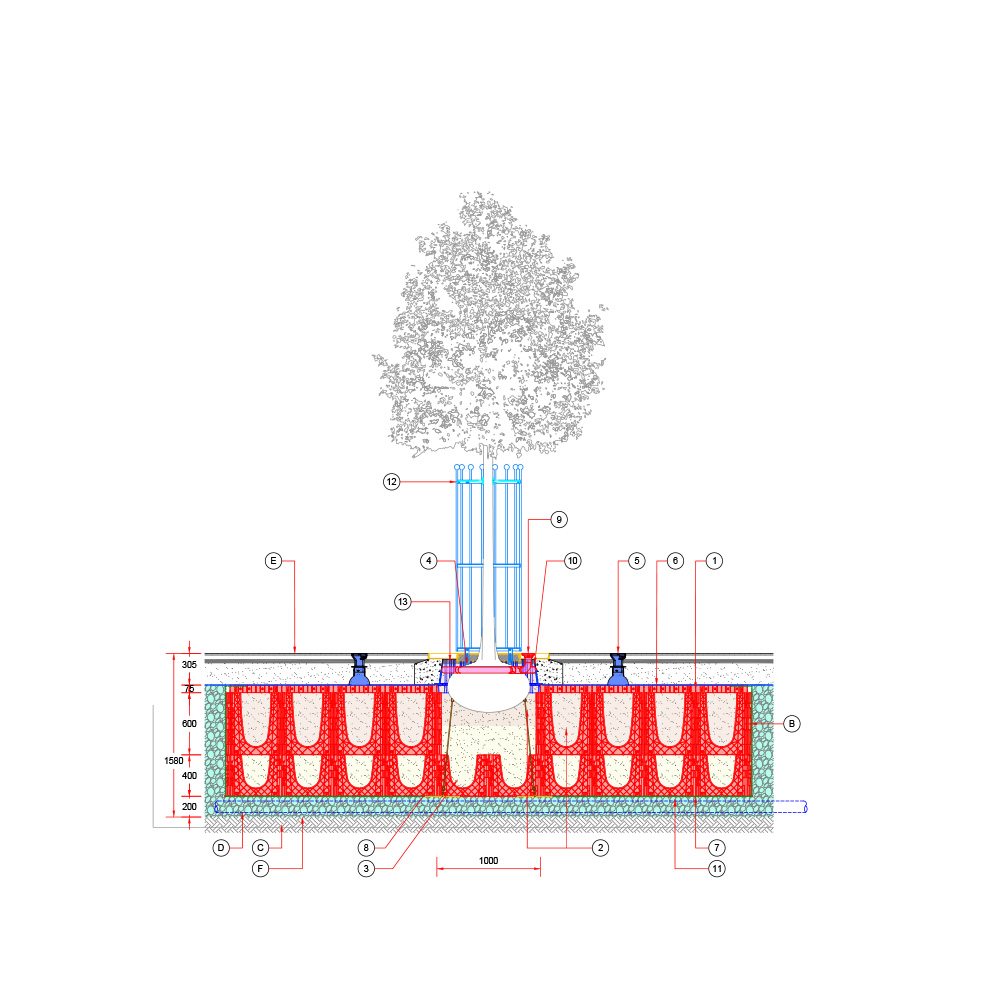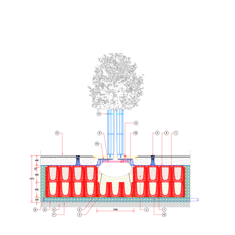 Baumgrube für sehr großwüchsige Baumarten in befestigter Fläche – RootSpace 1200.